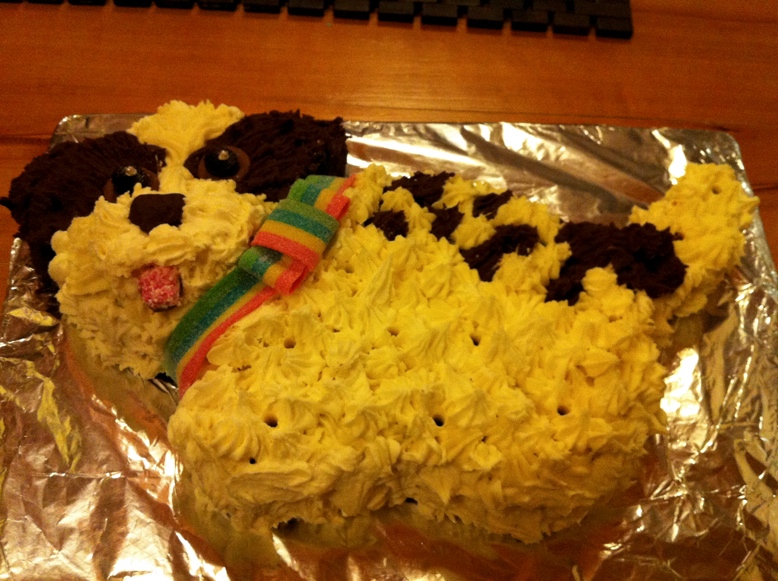 I spent the evening at my mums place with my brother and sister-in-law. We had a pancake dinner followed up an amazing cake!!! My sister-in-law is the most amazing cake maker!!!! She modelled the cake on my dog..by the time it was done, the cake dog’s head was bigger than my real dog’s head!!!