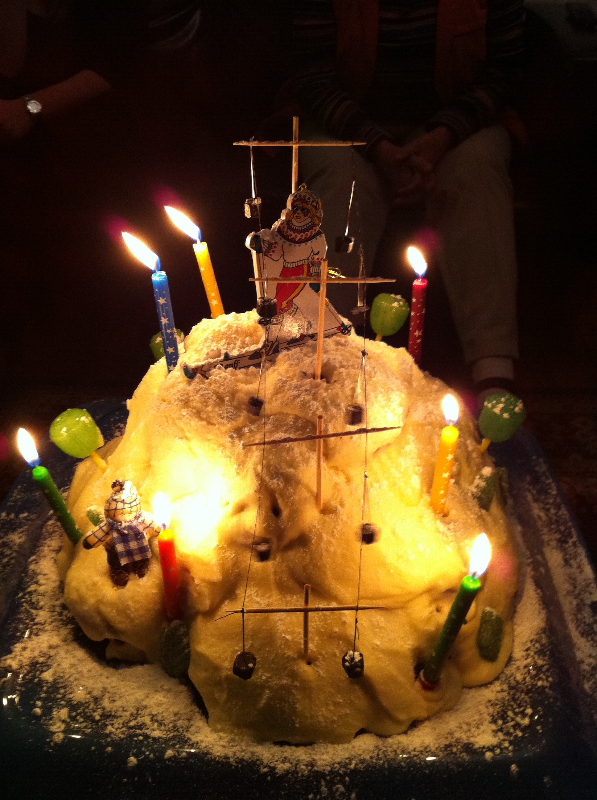 So we thanked the staff for some lovely food and head back to Pat and Anna’s house for a cup of tea (the new tea that P+A got me for my birthday: Madagascan Vanilla). I sat down to drink my tea when Anna brought out the birthday hat and plopped it on my head. The next thing you know, Pat and Anna came out with a HUGE cake. It was a Ben Lomond cake, which had the ski tow Giblin running up it and a skier at the top about to zooof down the slope! This cake was also a chocolate cake, with a buttercream icing and a few extra lollies sprinkled about. Served with ice cream, it was a fantastic way to end my birthday!!!