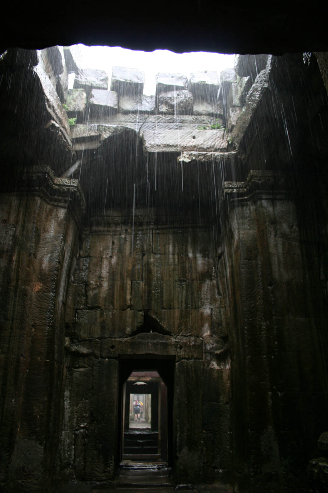 When the cooking class was over we hired a driver for the afternoon to take us to a few more temples. We went to Preah Khan and Neak Pean. Preah Khan was gorgeous, it was a very long temple and you would walk through short gallery after short gallery. In the centre was a memorial stupa containing the ashes of the king (this is one of the few temples still containing ashes, as many other temples were raided and damaged by the French, and then further damaged by the fighting in the time of the Civil War). It was absolutely bucketing with rain the whole time we were at these to temples, so it was a fairly short lived visit.