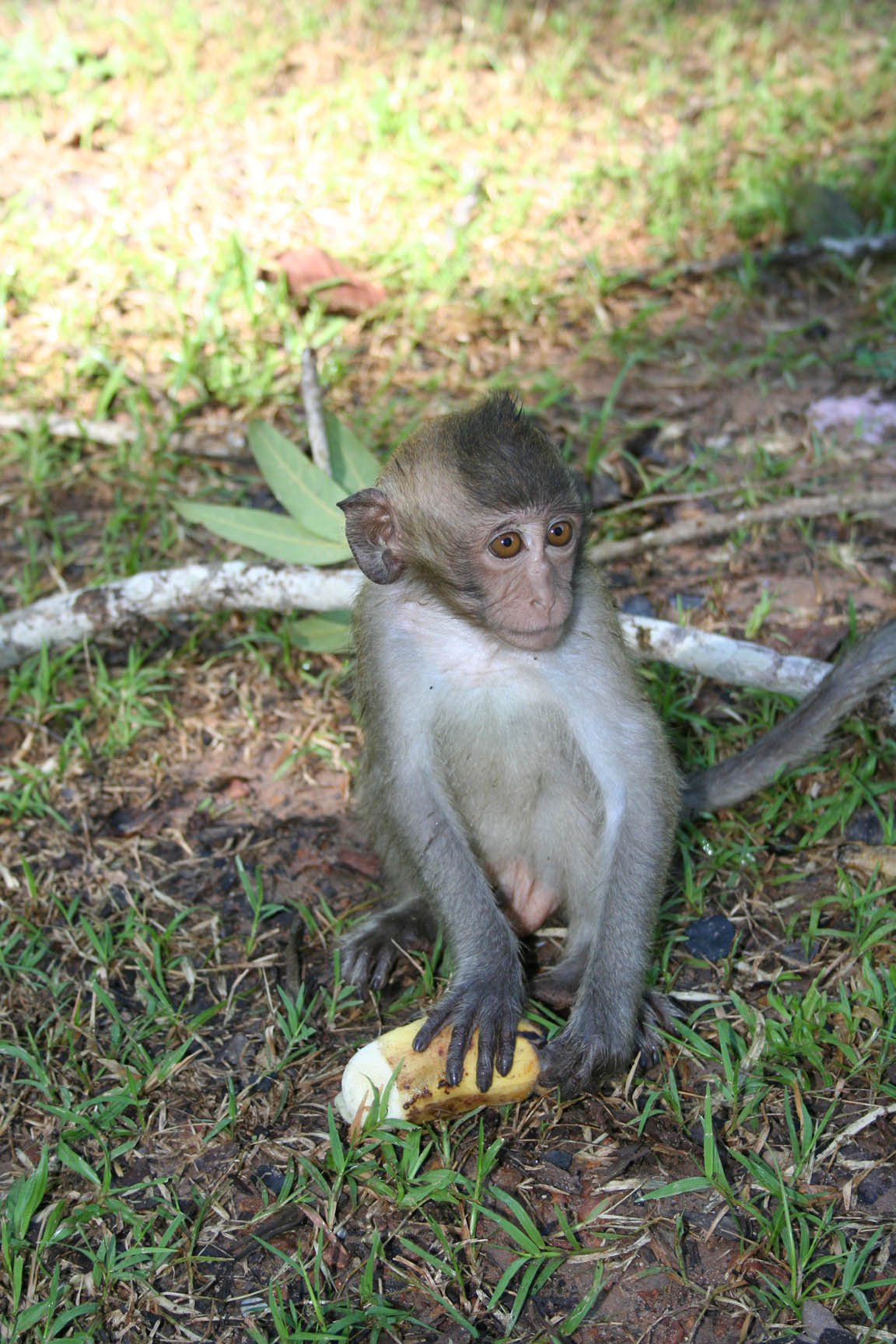 Inside the moat you first need to travel several hundred metres before getting to the centre of the ancient city. On this drive we spotted some monkeys, so we pulled over to have a look and take some pictures. Mum bought some bananas that we could feed them too. So I held out a banana to the papa monkey, it grabbed it, threw it on the ground and then ran at me and tried to climb up my legs. I screamed, and hid behind the guide! Its rather terrifying to have monkey running at you! I can tell you now the chance of it running to you for a cuddle and very slim! We fed some of the baby monkeys..they tried to run and climb up me too, after this I kept a good distance from the monkeys and stayed close to the guide who was holding onto a stick to scare them away if they got too close (not to hit them, but waving the stick at them was enough to keep them away).