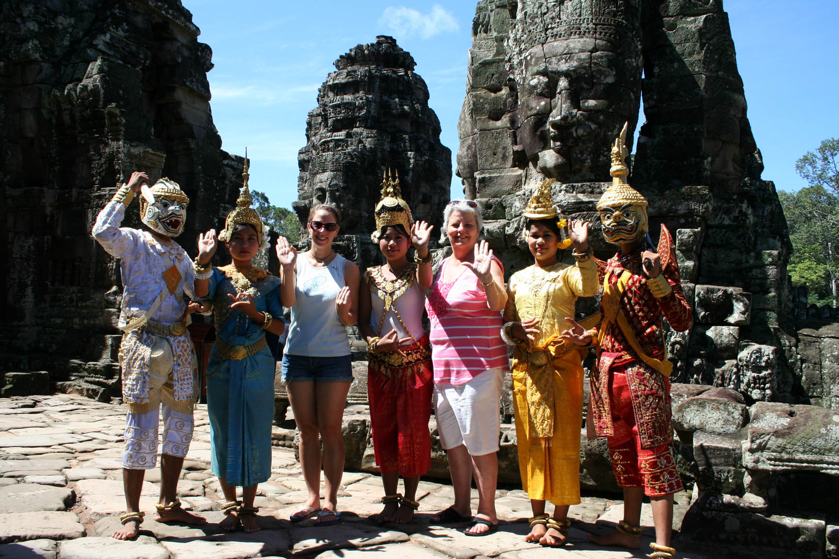 As it got into evening we found a great little street restaurant where we sat down and ordered some traditional Khmer food. We had beef amok. It was so tasty! The Cambodians use more meat and less vegies in their dishes than the Vietnamese people. They also have a much smaller selection of vegies that they use. As it was happy hour, I also took the opportunity to enjoy a cocktail…for $1.50 why wouldn’t you?!? The restaurant also had a traditional Apsara dancing show, so e watched some of that. It was beautiful to watch, and they had amazing costumes but the movements were so slow. In an hour we only saw 3 different dances.